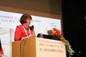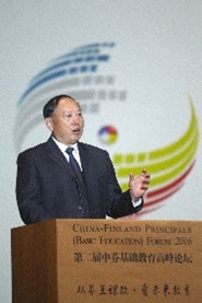 在2016中芬基础教育高峰论坛期间,其他一些著名的演讲者也发表了精彩的演讲:芬兰议会议员阿拉托·萨托宁先生表示,希望中芬教育专家的交流与合作能够促进两国教育的发展。 国家; 中国驻芬兰大使馆教育处负责人高宇航先生表示,很高兴看到今年的2016中芬基础教育高峰论坛在组织和表现上取得了更好的成绩,希望中芬教育界不断加强未来教育交流与合作。欧洲议会议员、芬兰教育部前部长海娜·维勒库宁女士指出,芬兰的教育体系融合了芬兰和国际教育的先进理念,真正立足于芬兰本土的文化和历史,这些多重元素共同创造和加强芬兰教育优势; 芬兰国家教育委员会总干事阿乌利斯·比特卡拉先生介绍了芬兰新一轮课程改革的核心理念、目标、结构和内容; 芬兰国家教育委员会教育顾问阿勒娅·赫拉帕女士分析了芬兰课程的总体概念和芬兰国家教育体系的特点; 坦佩雷市副市长莱纳·高斯蒂阿依宁女士感谢芬中教育学会和研究院组织本次 2016中芬基础教育高峰论坛,此次教育交流机会对坦佩雷市而言意义重大; 中国著名教育家陶西平先生分析了中国基础教育改革的动向; 2015-2016年度国际校长联合会(ICP)主席阿里·博卡先生从校长的角度介绍了如何带领学校走向21世纪的可持续发展; 芬兰校长协会主席利卡·琳朵思女士分析了学校、教师、学生和家长之间的关系。 来自中芬两国政府教育部门、高校、基础教育学校、ICT行业的其他教育专家和校长为与会校长们带来了专业精彩的主题演讲。