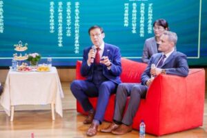 除精彩的演讲之外,万汇国际学府还为在场的家长们准备了一场和大咖对话的专属”圆桌派”交流活动,芬兰国际教育创新研究院的专家团队与家长们深入交流讨论了他们真正关心的教育热点问题,以及芬兰教育如何真正与中国国情相结合,实现国际教育的落地化,国家课程的校本化。